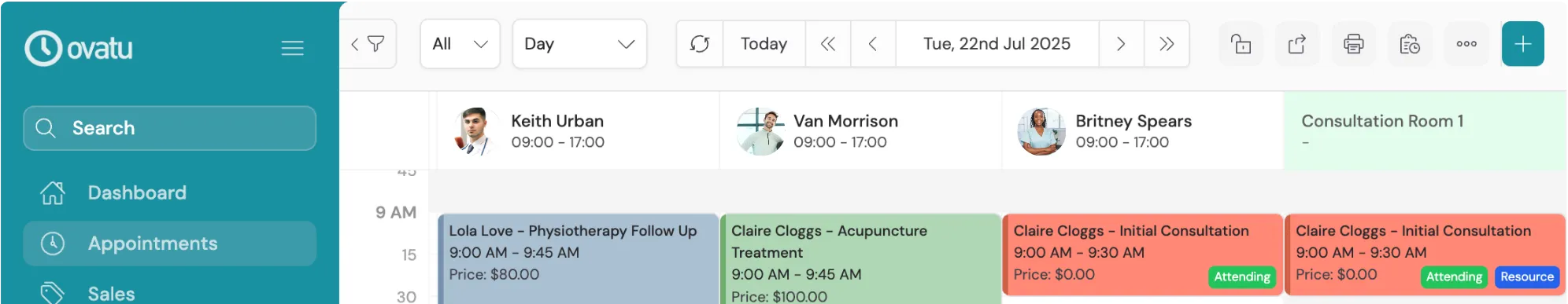 Assign specific rooms or equipment (e.g. treatment tables, exercise spaces) per appointment. View and manage availability across multi-disciplinary teams.